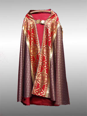 Das Obergewand des Nikolaus kleidet den Nikolaus sehr festlich. Ihr kennt das doch sicherlich auch. Wenn man zu einer schönen Gelegenheit eingeladen ist oder wenn man ganz besonders ausgeht, dann zieht man sich besonders hübsch an.